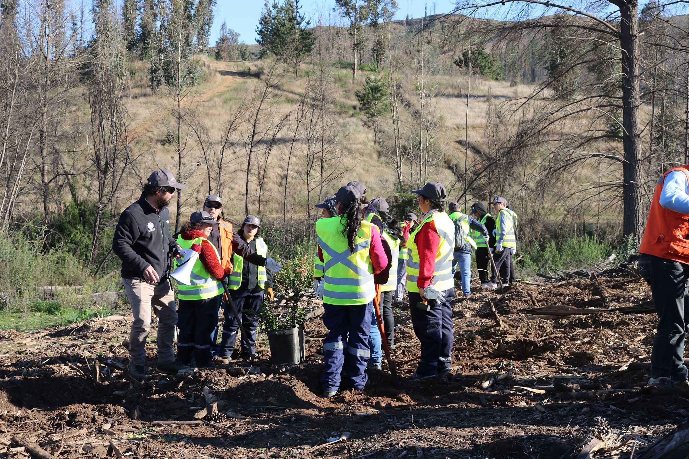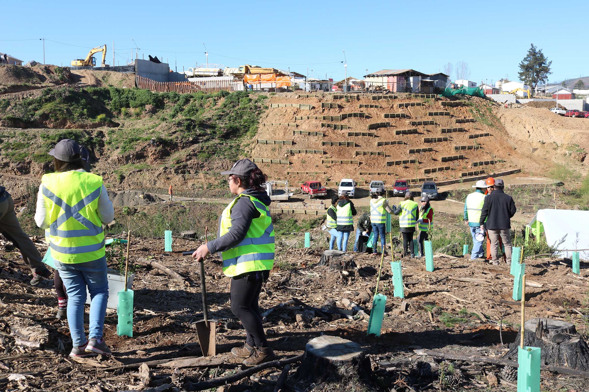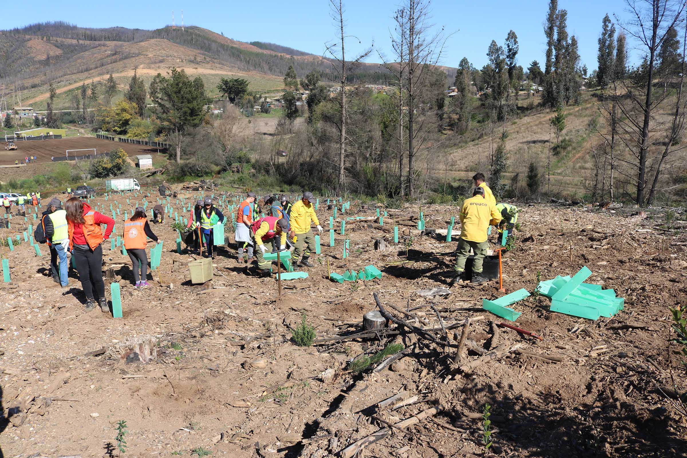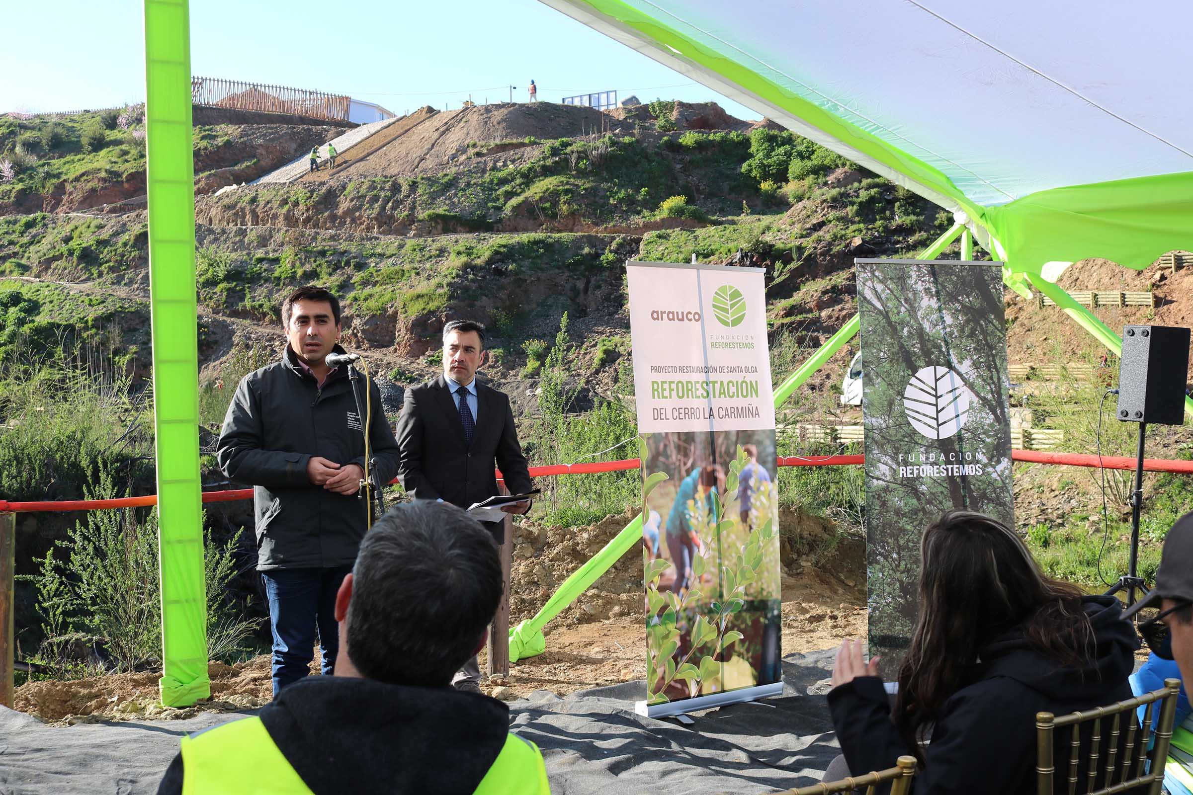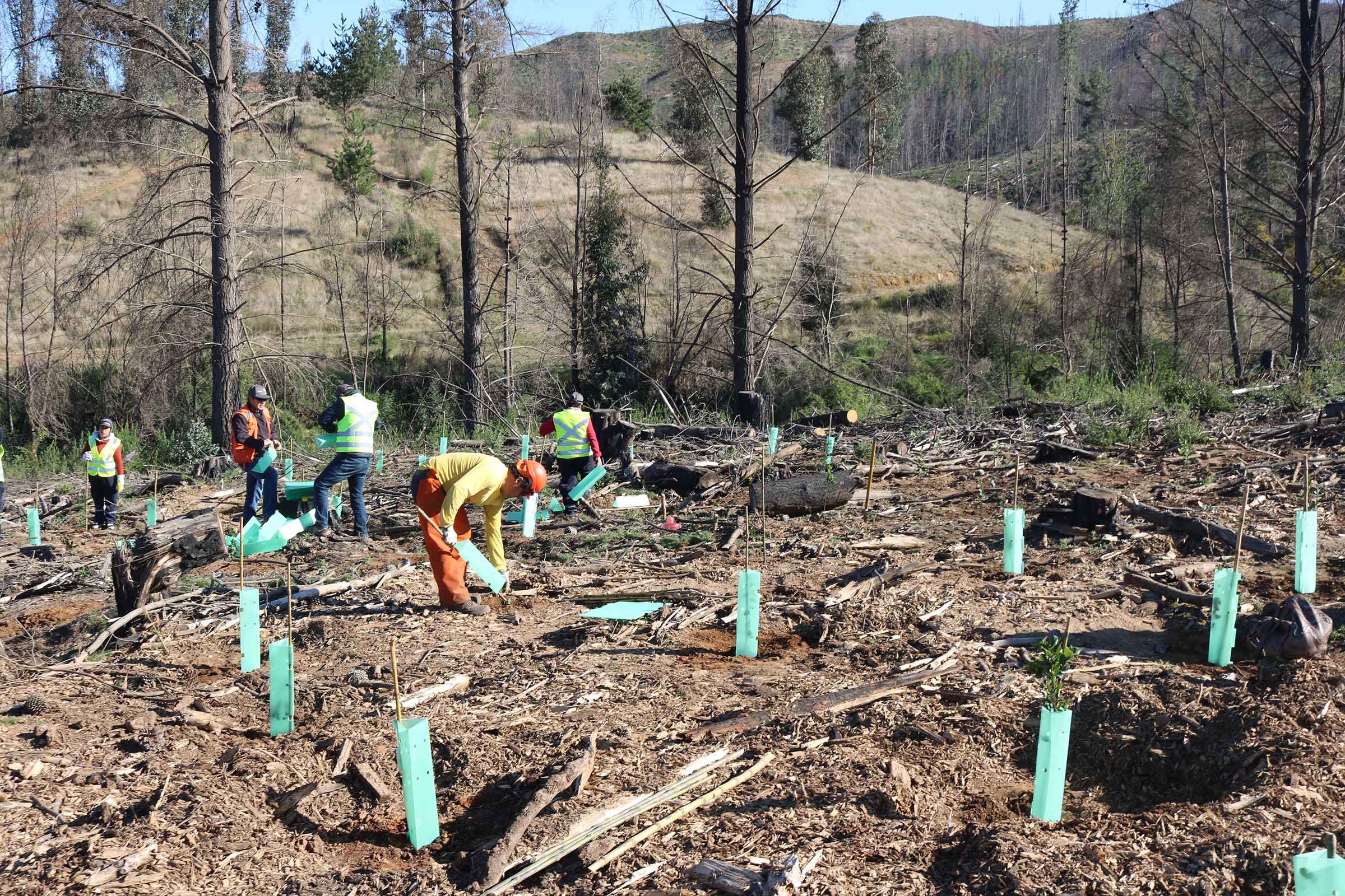 El proyecto se inició con una plantación de 3.400 especies nativas –aproximadamente 2,1 hectáreas- donde participaron voluntarios de Arauco, autoridades, habitantes de la zona y alumnos del Liceo Mac Iver. Este contempla la reforestación total de 51 hectáreas con bosque nativo, lo que se llevará a cabo durante los próximos meses.