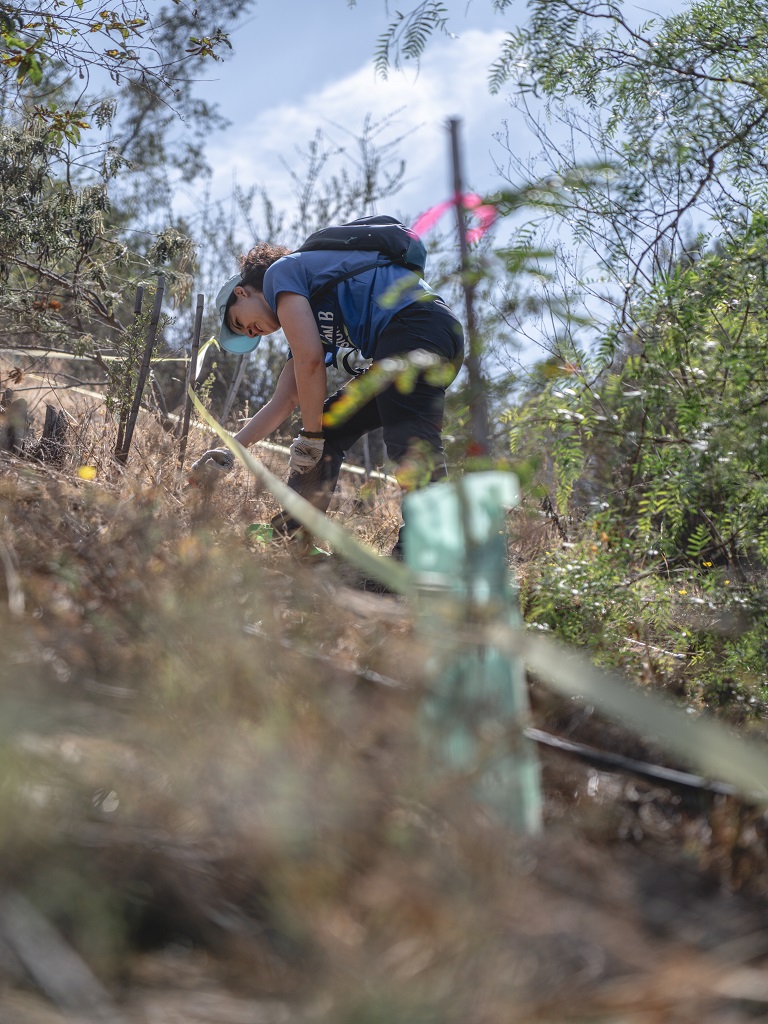 La empresa de seguros Southbridge se sumó a nuestros voluntariados de monitoreo y limpieza en parte de nuestras reforestaciones, labores que son vitales para que el nuevo bosque que se está formando dentro del Parque Metropolitano pueda crecer sin la competencia de agua y nutrientes que les genera la maleza, y contar con casillas que les permitirán aprovechar la disponibilidad de agua.