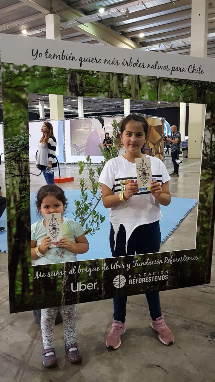 Es por esto que Uber Chile nos invito a participar con un stand, en el que junto a nuestros voluntarios dimos a conocer el trabajo de la fundación e inscribimos nuevos socios. También compartimos junto a los niños presentes en la zona kids, pintando máscaras y tatuajes de animales nativos, a la vez que aprendían sobre nuestros bosques y recursos naturales.