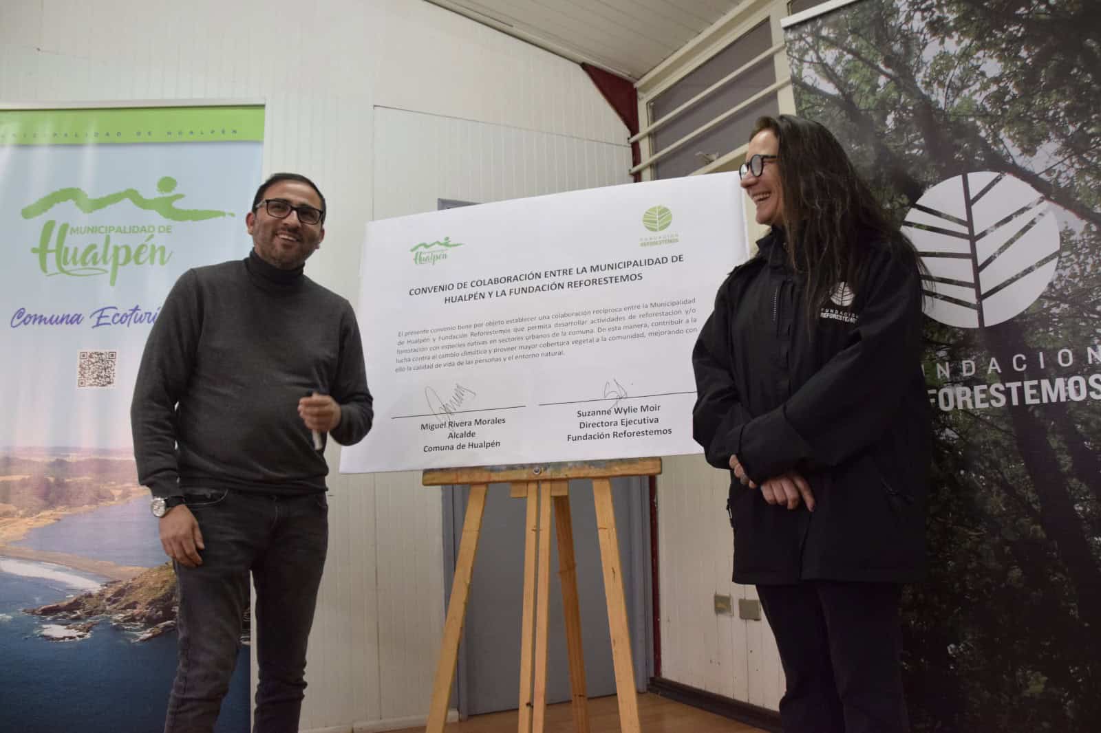 “Acabamos de firmar un convenio muy importante para nosotros. La idea de esta firma es trabajar de manera mancomunada con esta Fundación para mejorar las condiciones de nuestro arbolado urbano, plantando árboles nativos que nos permitan avanzar hacia nuestro principal objetivo, hacer de Hualpén una comuna ecoturística. Agradecemos profundamente a la Fundación Reforestemos, la cual nos permitirá avanzar en esta dirección que, estamos seguros, es la correcta”, señaló el alcalde de Hualpén, Miguel Rivera.